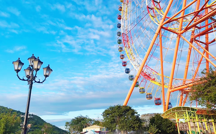 乘坐3千多米长的跨海缆车,在芽庄的狭长海岸上空尽情俯瞰五彩斑斓的霓虹,像鸟儿一样随着缆车自由飞翔,岛上大大的VINPEARL字样渐行渐远……